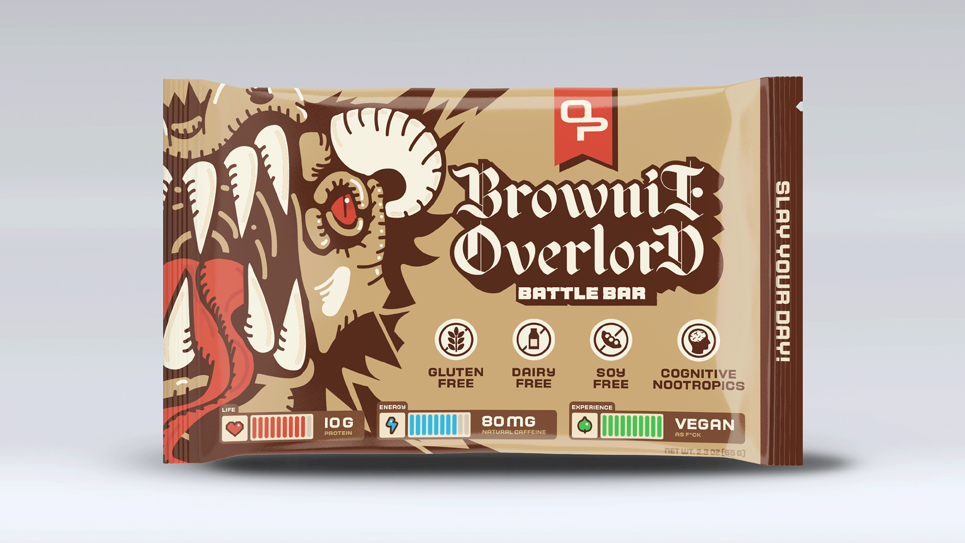 The OP Bar labels were printed and launched successfully. The packaging helped the brand stand out in a competitive category, captured the attention of gamers, and reinforced the fun, character-driven world of OVRPWRD. The client was ecstatic with the results and uses the designs to represent their product line.